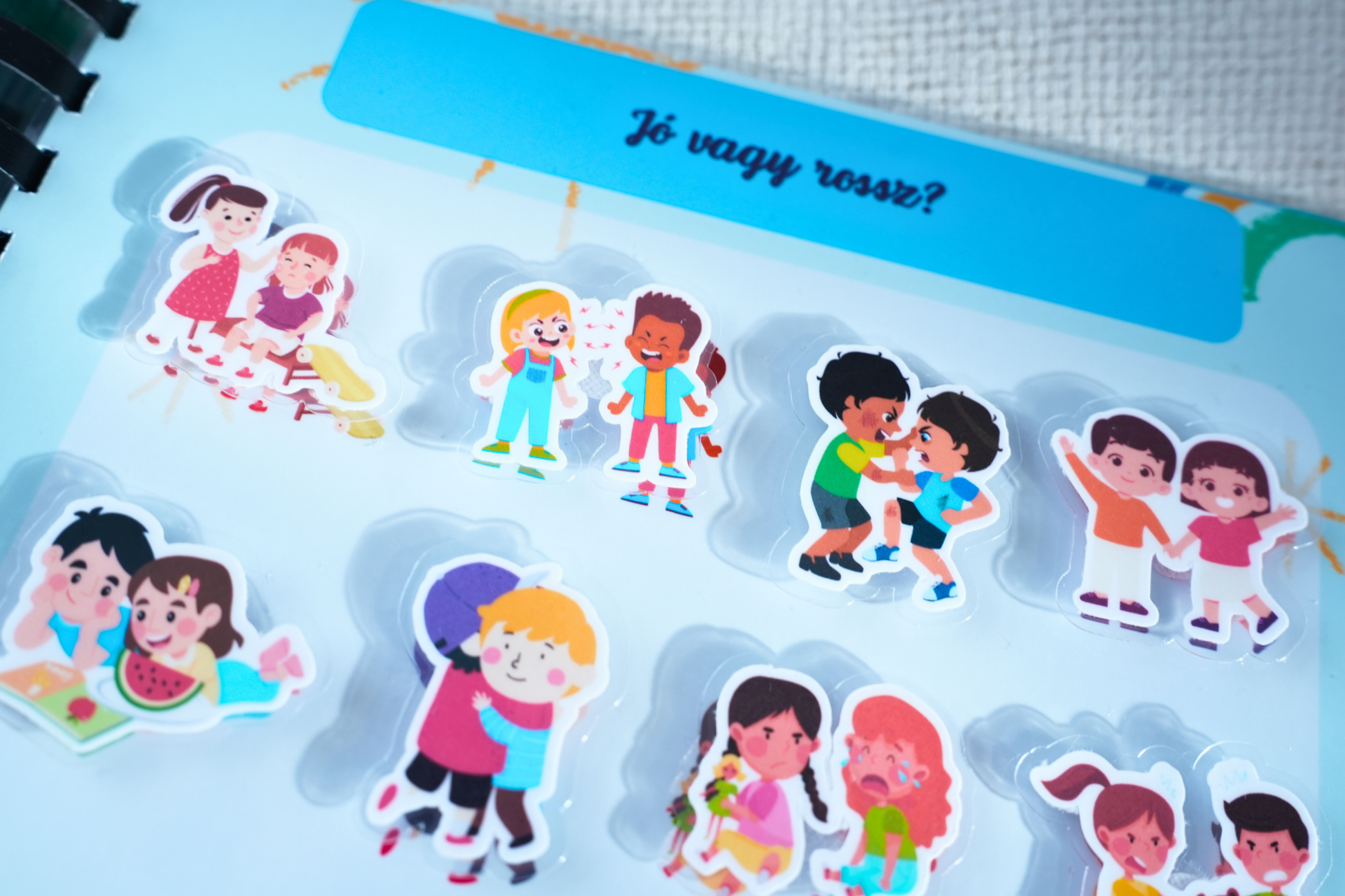 Minden lap tartalmazza a feladat leírását. Ezt olvasd fel a gyerkőcnek, hogy tudja mit kell csinálni.